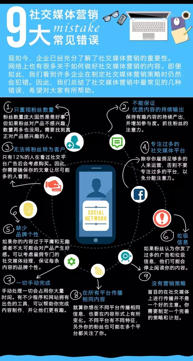 一张图看懂企业社交媒体营销常犯的9大错误