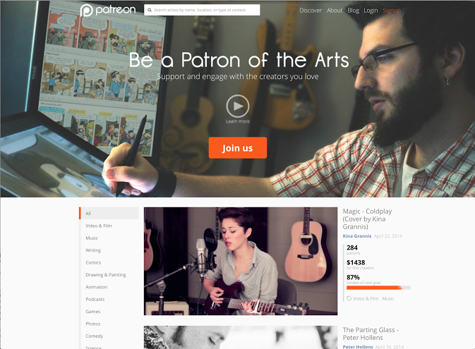 投资人开始相信在创作者和赞助商之间可以存在这样的中介服务,于是向Patreon投入了1700万美元的资金。Kickstarter和indiegogo已经相当壮大,但他们一次性的任务风格对于需要持续资金支持不断产出的内容创作者来说并不奏效。
